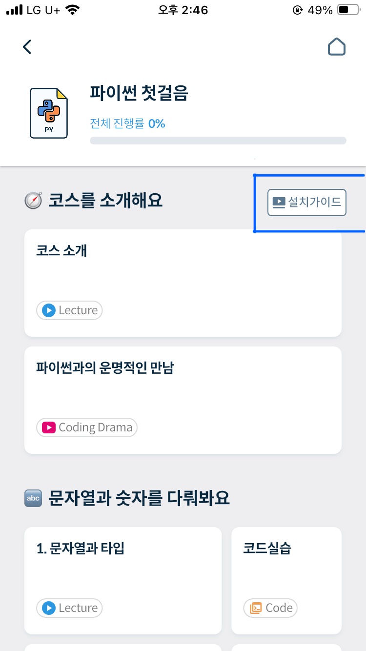 설치 가이드의 경우, 파이썬 외에 다른 코스들에도 순차적으로 추가될 예정이니 조금만 기다려주시면 감사하겠습니다 😊